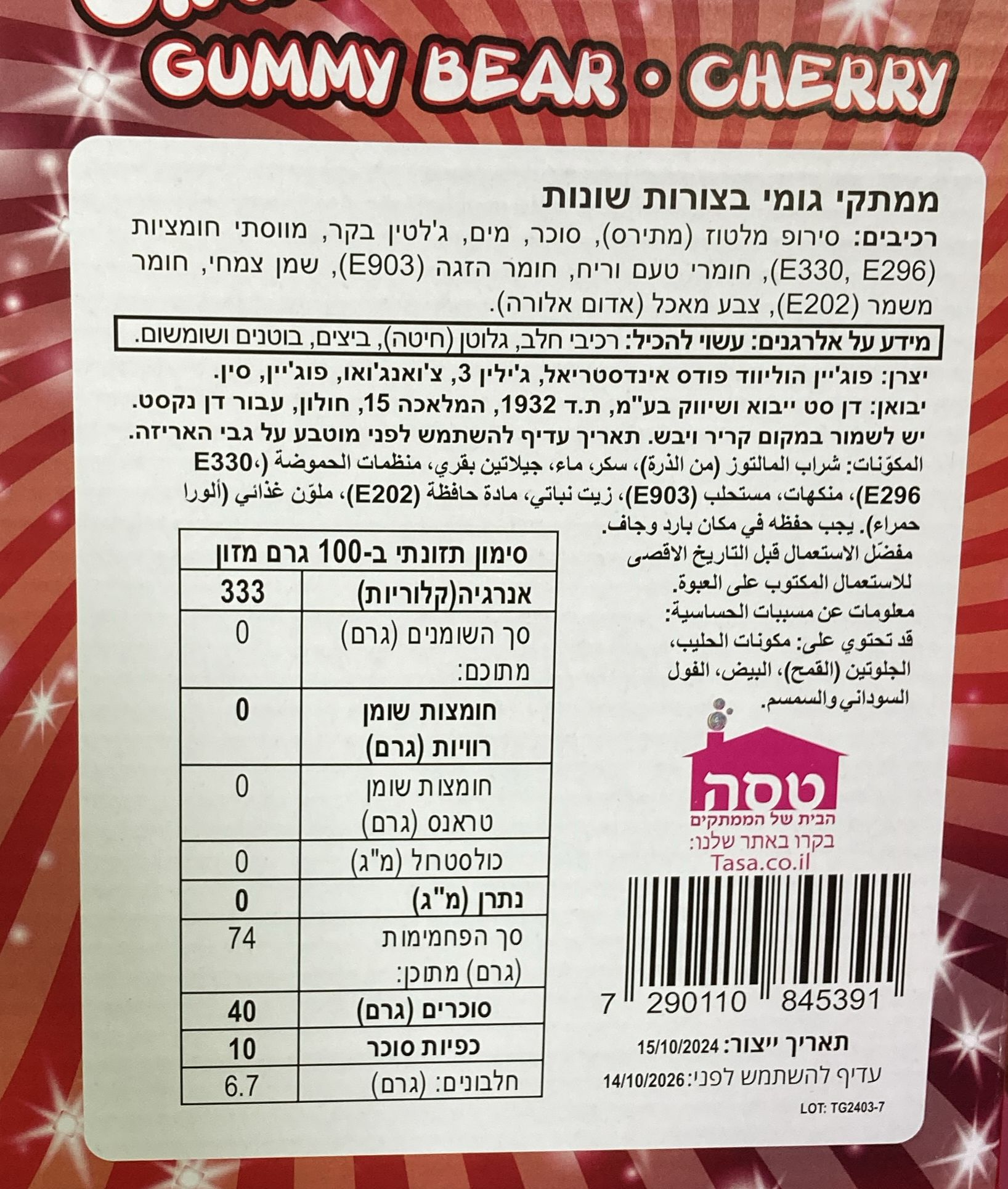 לשאלות על רכיבים ו / או אלרגיות נא לפנות לשירות לקוחות *9242