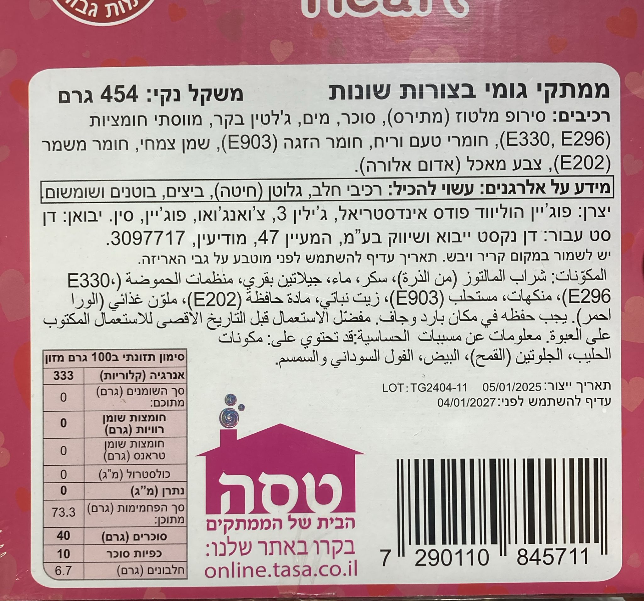 SC Renew MembershipSC Join Membershipממתק אצבעוני 7.5 גרםגומי המבורגר גדול+ ג'ל חמוץ 50 גרםגומי המבורגר מיני 10 גרםגומי ואוו בקבוק מסטיק חמוץ 500 גרםגומי ואוו מיני המבורגר 500 גרםגומי ואוו נחש פירות חמוץ 500 גרםגומי ואוו תות שדה קטן חמוץ 500 גרםגומי ואוו כריש אבטיח חמוץ 500 גרםגומי ואוו תות אוכמניות 500 גרםגומי ואוו נחש אנקונדה 500 גרםגומי ואוו כובע טרופי חמוץ 500 גרםראש ג'לי אבטיח 8 גרםסוכ' מנטוס רול יחידה דיסקברי 37.5 גרםאורביט גומי לעיסה ללא סוכר בטעם תפוח 14 גרםראש ג'לי תות 8 גרםראש ג'לי פטל 8 גרםראש ג'לי דובדבן 8 גרםעוגיות טעם חמאה קופסת פח ורדים 114 גרםעוגיות טעם חמאה קופסת פח פרחים 114 גרםרול וופל מאסטר 400 גרםוופל מאסטר גריף 360 גרםגולון מגה שוקו 145ג'מילקה טבלה פטל 100ג'-Kמילקה טבלה אוראו סנדוויץ' 92ג' - Kמילקה טבלה אגוז שלם 95ג'-Kמילקה קייק אנד שוק 175ג'-Kמילקה טבלה צימוק אגוז 90ג'-Kמילקה טבלה דובדבן 100ג' - Kקונוס לבבות שוקולד באהבה 48 גרםלבבות שוקולד בקופסא יהלום 52גרלקקן שוקולד 25 גרם I LOVE YOUסוכריות בטעם קוקוס 250 גרםסוכריות ג'ינגר קוקוס 250 גרםצ'יפס ירקות שורש בטטה 40ג אורגניצ'יפס ירקות שורש סלק 40ג' -אורגניהל משקה אנרגיה קלאסי 250 מלאמ אנד אמס שוקו חום 200ג'- Kסוכריות ג'ילי בוני פרוט 200 גרם SUMMER MIXסוכריות ג'ילי בוני פרוט 200 גרם CITRUS MIXסוכריות ג'ילי בוני פרוט 200 גרם BERRY MIXפופקורן בטעם שוקו 60 גרם OISHIפופקורן בטעם קרמל 60 גרם OISHIפופפולי פופקורן מוכן מלח ים 127 גרםפופפולי פופקורן מוכן פלפל מלח ים 142 גרםפופפולי פופקורן מוכן קרמל 142 גרםפופפולי פופקורן מוכן גבינה נאצו 142 גרםפופפולי פופקורן מוכן צדר לבן 142 גרםפופפולי פופקורן מוכן מתוק מלוח 142 גרםפופפולי פופקורן מוכן צדר חלפיניו 142 גרםפופפולי פופקורן מוכן מרשמלו 142 גרםפופפולי פופקורן מוכן חמאה 142 גרםקינדר בואנו דארק בודד 43 גרםגונץ בוטנים קלויים עם מלח 150 גר'מנטוס שקית מנטה 135 גרםמנטוס שקית פירות 135 גרםמארז מקלות ביסקוויט עם שוקולד חלבי 150 גרםזריפה גרעיני דלעת 250 גרםזריפה גרעיני אבטיח 200 גרםקרפט רוטב ברביקיו אורגינל 510 מ"לפבורס טראפל לבן פיסטוק 100ג'פבורס טראפל שוקו 100ג'פבורס טראפל לבן וניל 100ג'פבורס טראפל בלגי 400ג'אנרג'י מאגדת דגנים טראפלס ושוקולדאנרג'י מאגדת תחתית מרירנסקוויק אבקת תות 350ג'גולון טוסטדה ללא ת.סוכר 175ג'גולון טוסטדה ללא סוכר 350ג'גולון אורגני ביו שוקוצ'יפס 150ג'גולון אורגני ביו דיאג'סטיב צ'יה 270ג'גולון אורגני ביו דיאג'סטיב ש.שועל פירות 270ג'גולון אורגני ביו דיאג'סטיב ש.שועל שוקו 270ג'גולון אורגני ביו ביסקוויט 170ג'גולון מגה סנדוויץ' 250ג'גולון אורגני ביו מריה 350ג'סוכ' צ'ופה צ'ופס דברים מוזרים 120ג'סוכ' צ'ופה צ'ופס דברים מוזרים 120ג'צ'ופה צופס סוכ על מקל חמוץ 120ג'ברילה פסטו ריקוטה א.מלך 190ג'תחתית לפאי גראהם קרקר 170ג'גומי וידאל תות סוכר 500 גר'ברילה פסטו בזיליקום לימון 190ג'ברילה פסטו בזיליקום מוצרלה 190ג'סאנטאנג'לו-פאנטונה שוקולד צ'יפס 500 גרםסאנטאנג'לו-פאנטונה בקופסה 500 גר'דיי ביסתן קלינדר בטעמים שונים 251 גרםטבלת מילקה טופי אגוזים 300ג' Kטבלת מילקה טריולד 280ג' Kשוק' מילקה אוראו 300גר' Kטבלת מילקה שוקו אנד קקס 300ג' Kגומי תנתה 500 גרם מיקס מסוכר מיני תות בננהגומי תנתה 500 גר' תות חמוץ גדולגומי תנתה 500 גר' נשיקהסוכריות ג'לי עטופות שמחותראש משוגע תות 40 גרםלקקני מיני מארז כ 18 יח' צבעי הקשת 60 גרםפרינגלס פלפל הבאנרס 158 גרםשוק' בר טובלרון חלב 200ג'דג כסף פרווה 1 ק"גדג זהב חלבי- 1 ק"גcremo וופל קרם שוקולד מריר בודדאורז לבן דביק 1 ק"גאצות נורי סילוור 10 דפים 25 גרםאבקה להכנת סחלב 500 גרםנסטלה קורנפלקס ללא גלוטן 375ג'אנטון ברג מרציפן מילוי בייליס 175 גרםאנטון ברג מרציפן משמש בברנדי 220 גרםשוקולד רושן אורירי מריר 80 גרםשוקולד רושן אורירי חלב 80 גרםשוקולד רושן אורירי לבן קרמל 80 גרםעוגיות מילקה ביסקוויט שוקולד חלב 150 גרםמארז סוכריות לעיסה תות שדה ודומדמניות 150 גרםהיידי מוצארט נוגט 119ג'טוניס שוקולד חלב עם עוגיות שוקולד צ'יפס 180 גרםטוניס שוקולד מריר מעולה 