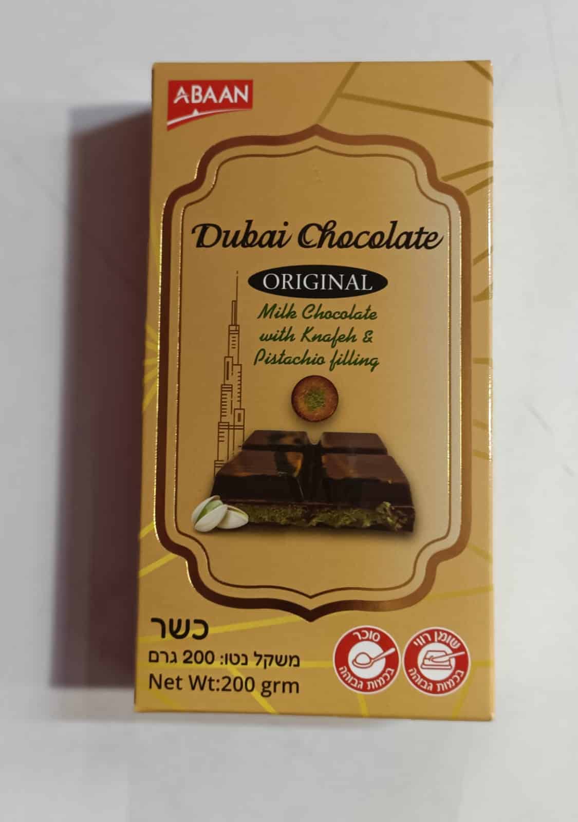 / דובאי שוקולד חלב במילוי פיסטוק וקדאיף 200 גרם