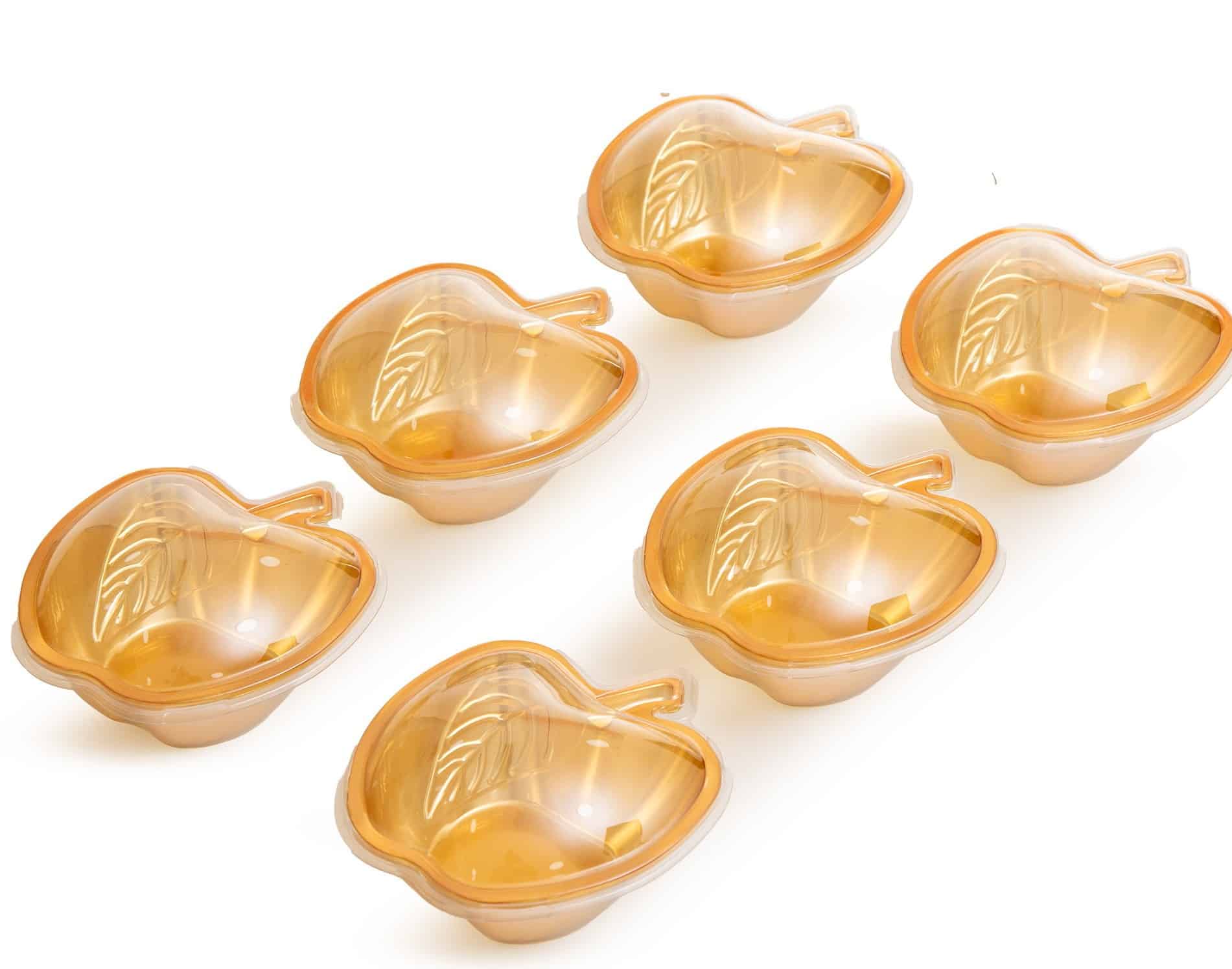 חב' 6 כלי פלסטי זהב+מכסה -בצורת תפוח 12.8*13.8*7 ס"מ