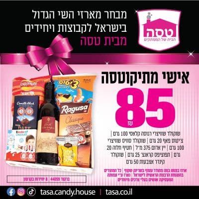 SC Renew MembershipSC Join Membershipממתק אצבעוני 7.5 גרםגומי המבורגר גדול+ ג'ל חמוץ 50 גרםגומי המבורגר מיני 10 גרםגומי ואוו בקבוק מסטיק חמוץ 500 גרםגומי ואוו מיני המבורגר 500 גרםגומי ואוו נחש פירות חמוץ 500 גרםגומי ואוו תות שדה קטן חמוץ 500 גרםגומי ואוו כריש אבטיח חמוץ 500 גרםגומי ואוו תות אוכמניות 500 גרםגומי ואוו נחש אנקונדה 500 גרםגומי ואוו כובע טרופי חמוץ 500 גרםראש ג'לי אבטיח 8 גרםסוכ' מנטוס רול יחידה דיסקברי 37.5 גרםאורביט גומי לעיסה ללא סוכר בטעם תפוח 14 גרםראש ג'לי תות 8 גרםראש ג'לי פטל 8 גרםראש ג'לי דובדבן 8 גרםעוגיות טעם חמאה קופסת פח ורדים 114 גרםעוגיות טעם חמאה קופסת פח פרחים 114 גרםרול וופל מאסטר 400 גרםוופל מאסטר גריף 360 גרםגולון מגה שוקו 145ג'מילקה טבלה פטל 100ג'-Kמילקה טבלה אוראו סנדוויץ' 92ג' - Kמילקה טבלה אגוז שלם 95ג'-Kמילקה קייק אנד שוק 175ג'-Kמילקה טבלה צימוק אגוז 90ג'-Kמילקה טבלה דובדבן 100ג' - Kקונוס לבבות שוקולד באהבה 48 גרםלבבות שוקולד בקופסא יהלום 52גרלקקן שוקולד 25 גרם I LOVE YOUסוכריות בטעם קוקוס 250 גרםסוכריות ג'ינגר קוקוס 250 גרםצ'יפס ירקות שורש בטטה 40ג אורגניצ'יפס ירקות שורש סלק 40ג' -אורגניהל משקה אנרגיה קלאסי 250 מלאמ אנד אמס שוקו חום 200ג'- Kסוכריות ג'ילי בוני פרוט 200 גרם SUMMER MIXסוכריות ג'ילי בוני פרוט 200 גרם CITRUS MIXסוכריות ג'ילי בוני פרוט 200 גרם BERRY MIXפופקורן בטעם שוקו 60 גרם OISHIפופקורן בטעם קרמל 60 גרם OISHIפופפולי פופקורן מוכן מלח ים 127 גרםפופפולי פופקורן מוכן פלפל מלח ים 142 גרםפופפולי פופקורן מוכן קרמל 142 גרםפופפולי פופקורן מוכן גבינה נאצו 142 גרםפופפולי פופקורן מוכן צדר לבן 142 גרםפופפולי פופקורן מוכן מתוק מלוח 142 גרםפופפולי פופקורן מוכן צדר חלפיניו 142 גרםפופפולי פופקורן מוכן מרשמלו 142 גרםפופפולי פופקורן מוכן חמאה 142 גרםקינדר בואנו דארק בודד 43 גרםגונץ בוטנים קלויים עם מלח 150 גר'מנטוס שקית מנטה 135 גרםמנטוס שקית פירות 135 גרםמארז מקלות ביסקוויט עם שוקולד חלבי 150 גרםזריפה גרעיני דלעת 250 גרםזריפה גרעיני אבטיח 200 גרםקרפט רוטב ברביקיו אורגינל 510 מ"לפבורס טראפל לבן פיסטוק 100ג'פבורס טראפל שוקו 100ג'פבורס טראפל לבן וניל 100ג'פבורס טראפל בלגי 400ג'אנרג'י מאגדת דגנים טראפלס ושוקולדאנרג'י מאגדת תחתית מרירנסקוויק אבקת תות 350ג'גולון טוסטדה ללא ת.סוכר 175ג'גולון טוסטדה ללא סוכר 350ג'גולון אורגני ביו שוקוצ'יפס 150ג'גולון אורגני ביו דיאג'סטיב צ'יה 270ג'גולון אורגני ביו דיאג'סטיב ש.שועל פירות 270ג'גולון אורגני ביו דיאג'סטיב ש.שועל שוקו 270ג'גולון אורגני ביו ביסקוויט 170ג'גולון מגה סנדוויץ' 250ג'גולון אורגני ביו מריה 350ג'סוכ' צ'ופה צ'ופס דברים מוזרים 120ג'סוכ' צ'ופה צ'ופס דברים מוזרים 120ג'צ'ופה צופס סוכ על מקל חמוץ 120ג'ברילה פסטו ריקוטה א.מלך 190ג'תחתית לפאי גראהם קרקר 170ג'גומי וידאל תות סוכר 500 גר'ברילה פסטו בזיליקום לימון 190ג'ברילה פסטו בזיליקום מוצרלה 190ג'סאנטאנג'לו-פאנטונה שוקולד צ'יפס 500 גרםסאנטאנג'לו-פאנטונה בקופסה 500 גר'דיי ביסתן קלינדר בטעמים שונים 251 גרםטבלת מילקה טופי אגוזים 300ג' Kטבלת מילקה טריולד 280ג' Kשוק' מילקה אוראו 300גר' Kטבלת מילקה שוקו אנד קקס 300ג' Kגומי תנתה 500 גרם מיקס מסוכר מיני תות בננהגומי תנתה 500 גר' תות חמוץ גדולגומי תנתה 500 גר' נשיקהסוכריות ג'לי עטופות שמחותראש משוגע תות 40 גרםלקקני מיני מארז כ 18 יח' צבעי הקשת 60 גרםפרינגלס פלפל הבאנרס 158 גרםשוק' בר טובלרון חלב 200ג'דג כסף פרווה 1 ק"גדג זהב חלבי- 1 ק"גcremo וופל קרם שוקולד מריר בודדאורז לבן דביק 1 ק"גאצות נורי סילוור 10 דפים 25 גרםאבקה להכנת סחלב 500 גרםנסטלה קורנפלקס ללא גלוטן 375ג'אנטון ברג מרציפן מילוי בייליס 175 גרםאנטון ברג מרציפן משמש בברנדי 220 גרםשוקולד רושן אורירי מריר 80 גרםשוקולד רושן אורירי חלב 80 גרםשוקולד רושן אורירי לבן קרמל 80 גרםעוגיות מילקה ביסקוויט שוקולד חלב 150 גרםמארז סוכריות לעיסה תות שדה ודומדמניות 150 גרםהיידי מוצארט נוגט 119ג'טוניס שוקולד חלב עם עוגיות שוקולד צ'יפס 180 גרםטוניס שוקולד מריר מעולה 