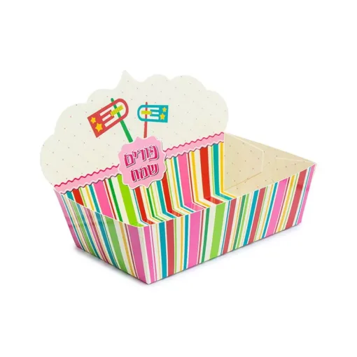 מגש קרטון מודבק+גב 23.5/15/7 ס"מ-פורים שמח-דגם ברקוד