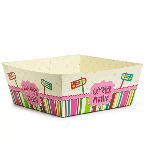 מגש קרטון מודבק 22/22/10.5 ס"מ-פורים שמח-דגם ברקוד