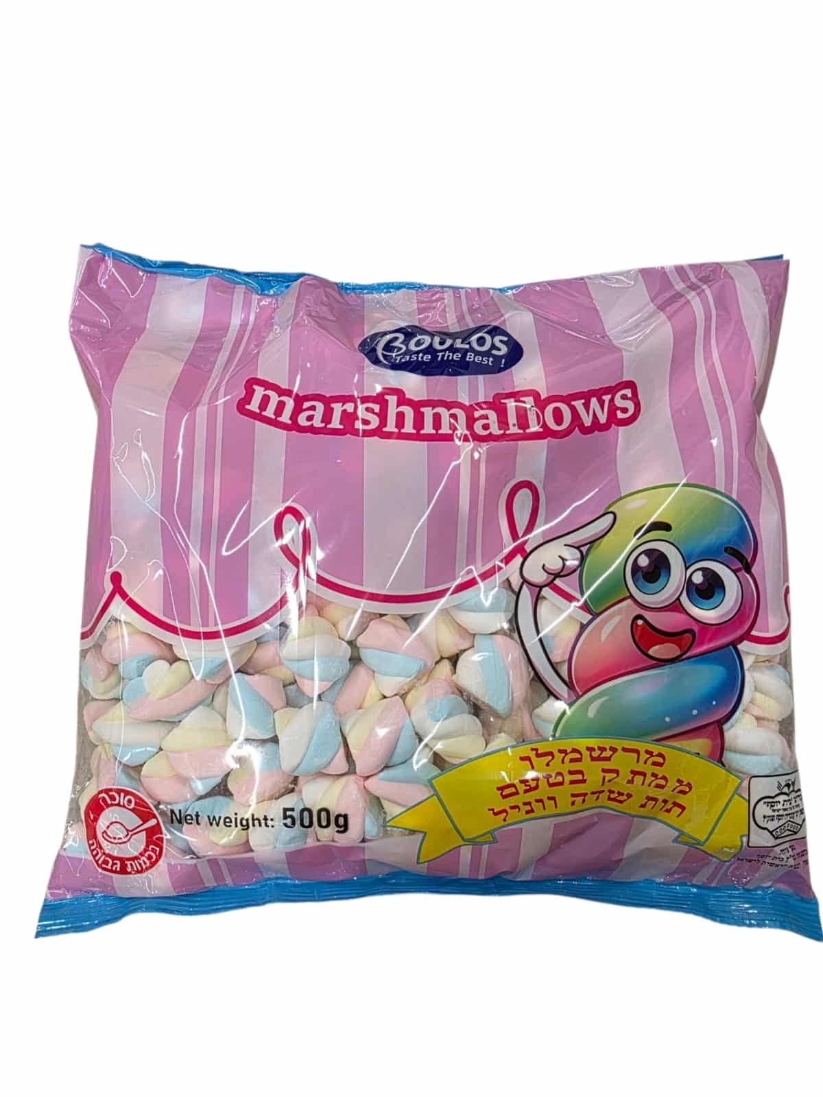 ממתק מרשמלו מסולסל צבעוני BOULOSבטעם תות וניל 500 גרם