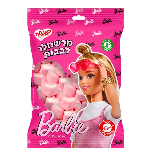 מרשמלו לבבות ורוד לבן ברבי 150 גרם – תות שדה