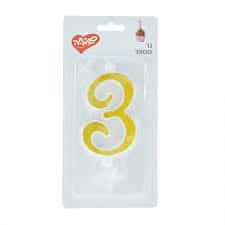 נר מספר ענק נצנצים זהב ולבן 3