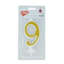 / נר מספר ענק נצנצים זהב ולבן 9