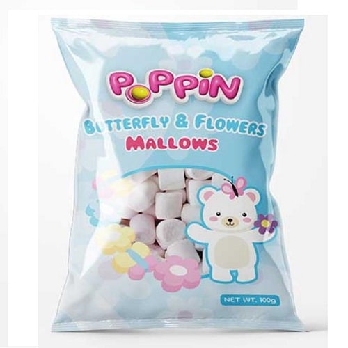 פופין מרשמלו כחול פרפר ופרחים 100 גרם